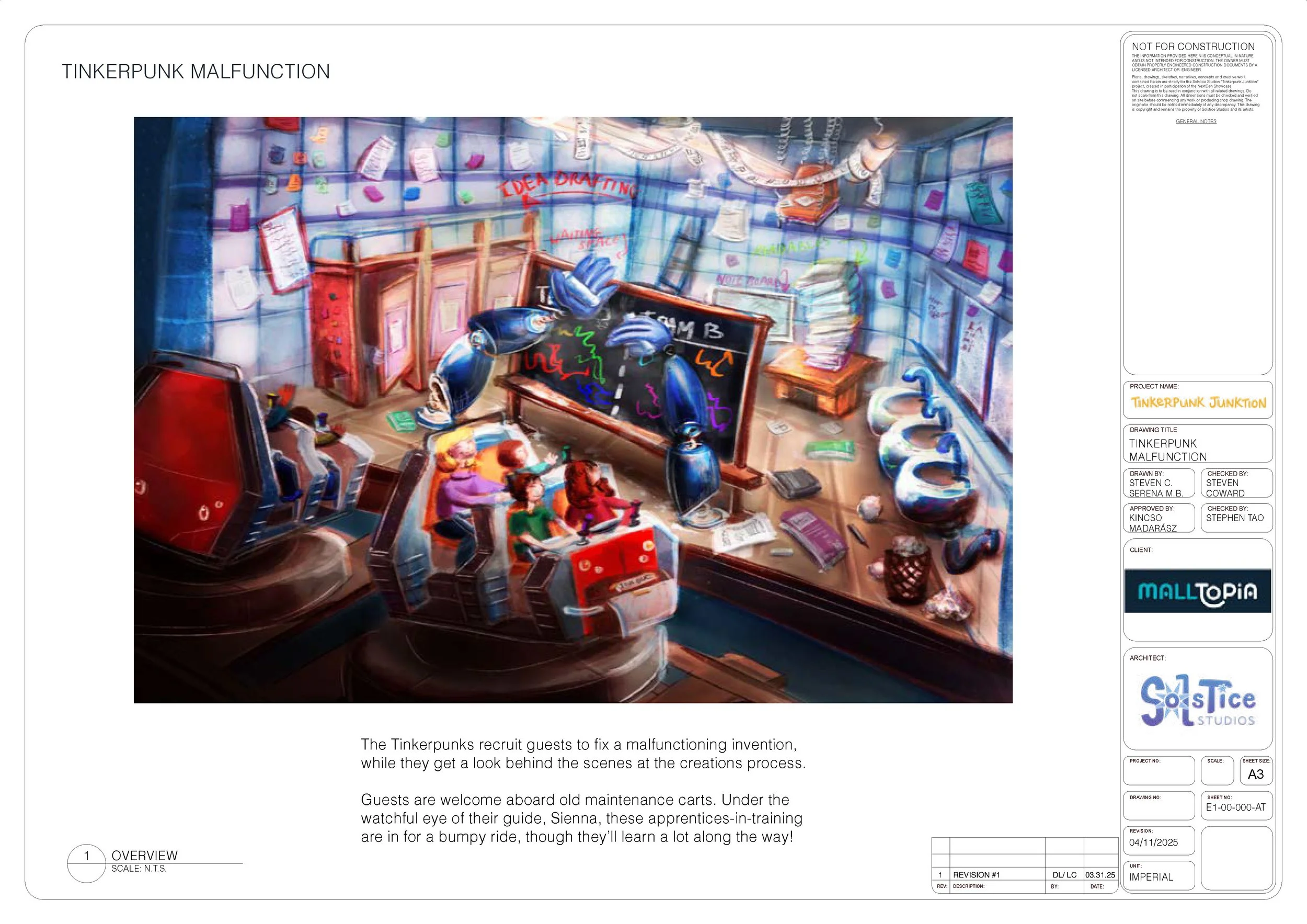 This project was part of NextGen Showcase, an 11-month-long educational program that simulates a creative studio environment, whereby participants work in teams to create a themed attraction in response to a client brief. Teams worked through Blue Sky, Concept, and Schematic Design phases and held a final presentation at SATE Europe 2025 to a crowd of industry professionals.