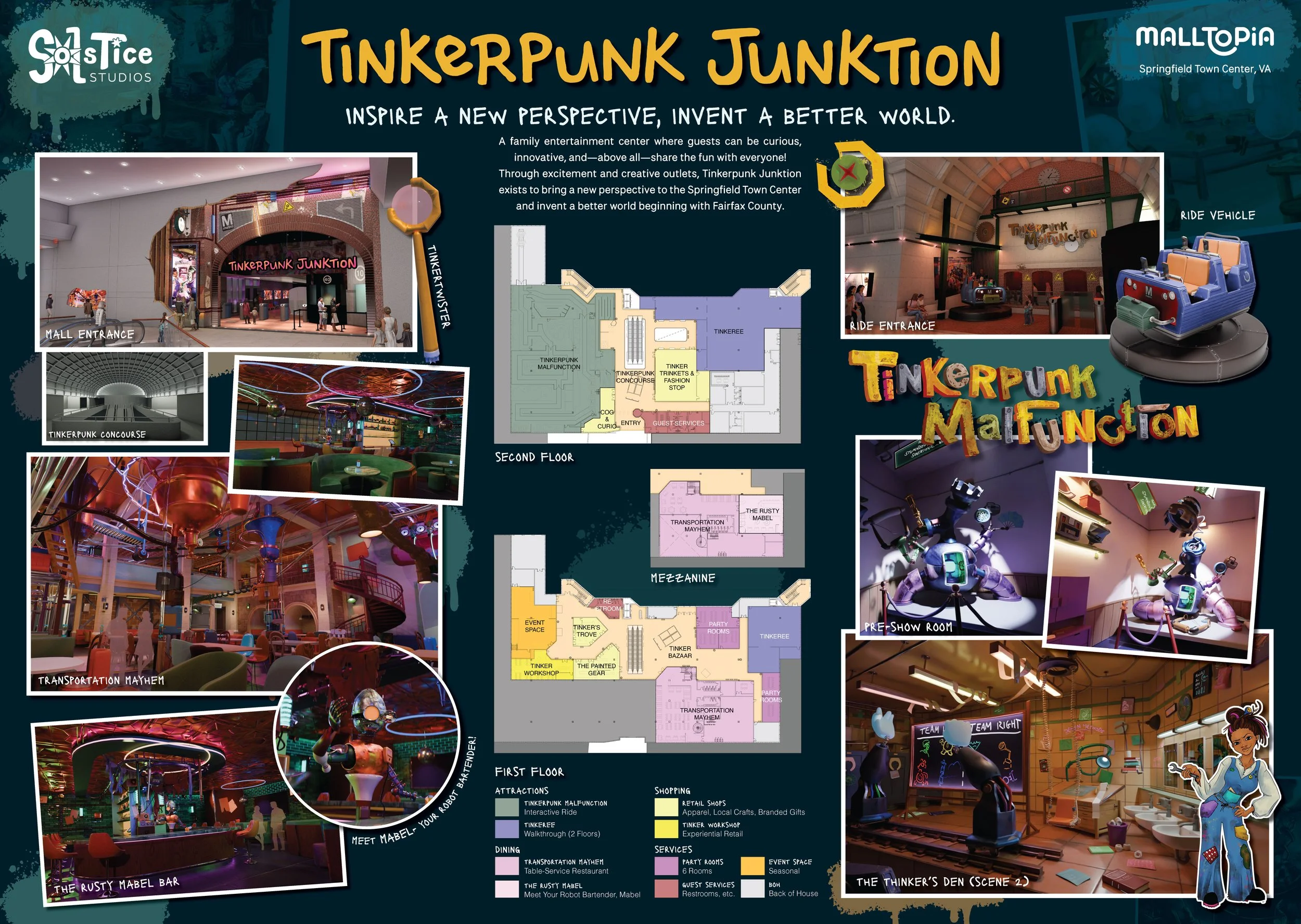 Have you ever wanted to unleash your creative potential and make the world a better place? Families from all over are welcome to Tinkerpunk Junktion, a handmade haven where the Tinkerpunks have transformed an abandoned metro station into an embassy of both creativity and sustainability. Tinkerpunk Junktion contains several activities to captivate and delight visitors, including an interactive dark ride, a kinetic restaurant, several retail options and much more.